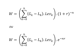 Création de Richesse actualisée = ((Total des Gains – Total des Pertes) x levier financier) x (1+ taux de capitalisation) exposant (- n périodes de placement durant notre espérance de vie)